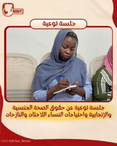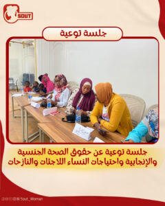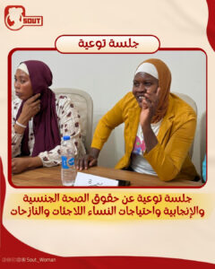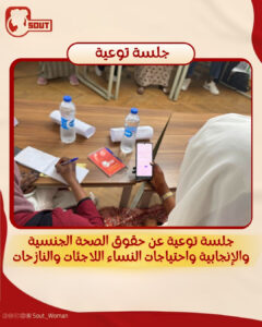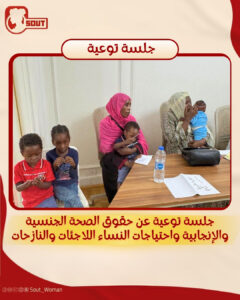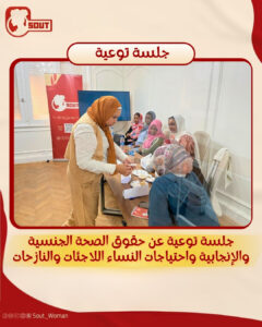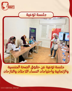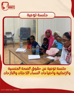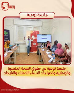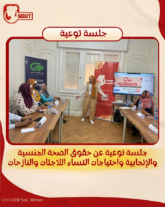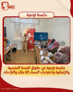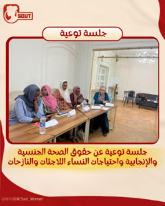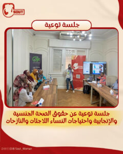 كانت مبادرة “صوت لدعم حقوق المرأة” عقدت جلسة توعية للفتيات والنساء اللاجئات والنازحات في مصر، عن الحقوق و الصحة الجنسية والإنجابية ومناقشة حول الاحتياجات النسائية.