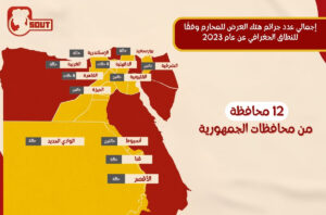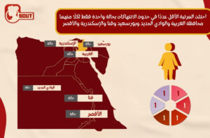 واحتلت المرتبة الأقل عددًا في حدوث الانتهاكات بحالة واحدة فقط لكلًا منهما محافظة الغربية والوادي الجديد وبورسعيد وقنا والإسكندرية والأقصر.