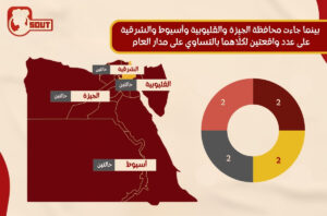 بينما جاءت محافظة الجيزة والقليوبية وأسيوط والشرقية بعدد واقعتين لكلًاهما بالتساوي على مدار العام.